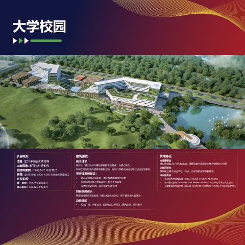 土地用途: 教育与科研机构 项目以“城市功能与自然景观的无缝融合”为核心理念, 精心规划的人行与车行流线;外围隐蔽车道设计以保持校园步行体验
